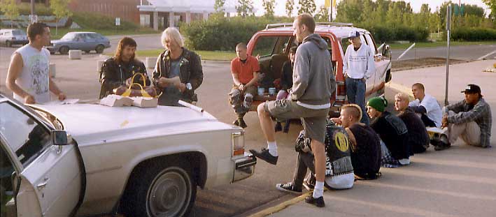 Drives from one show to another when heading out West are typically LONG! However, the distance from Edmonton to Red Deer was only about 2 hours so we had some time to kill before the show. If memory serves me correctly this photo shows Steve and Drew reading a great review of a Random Killing CD in Slur Magazine.